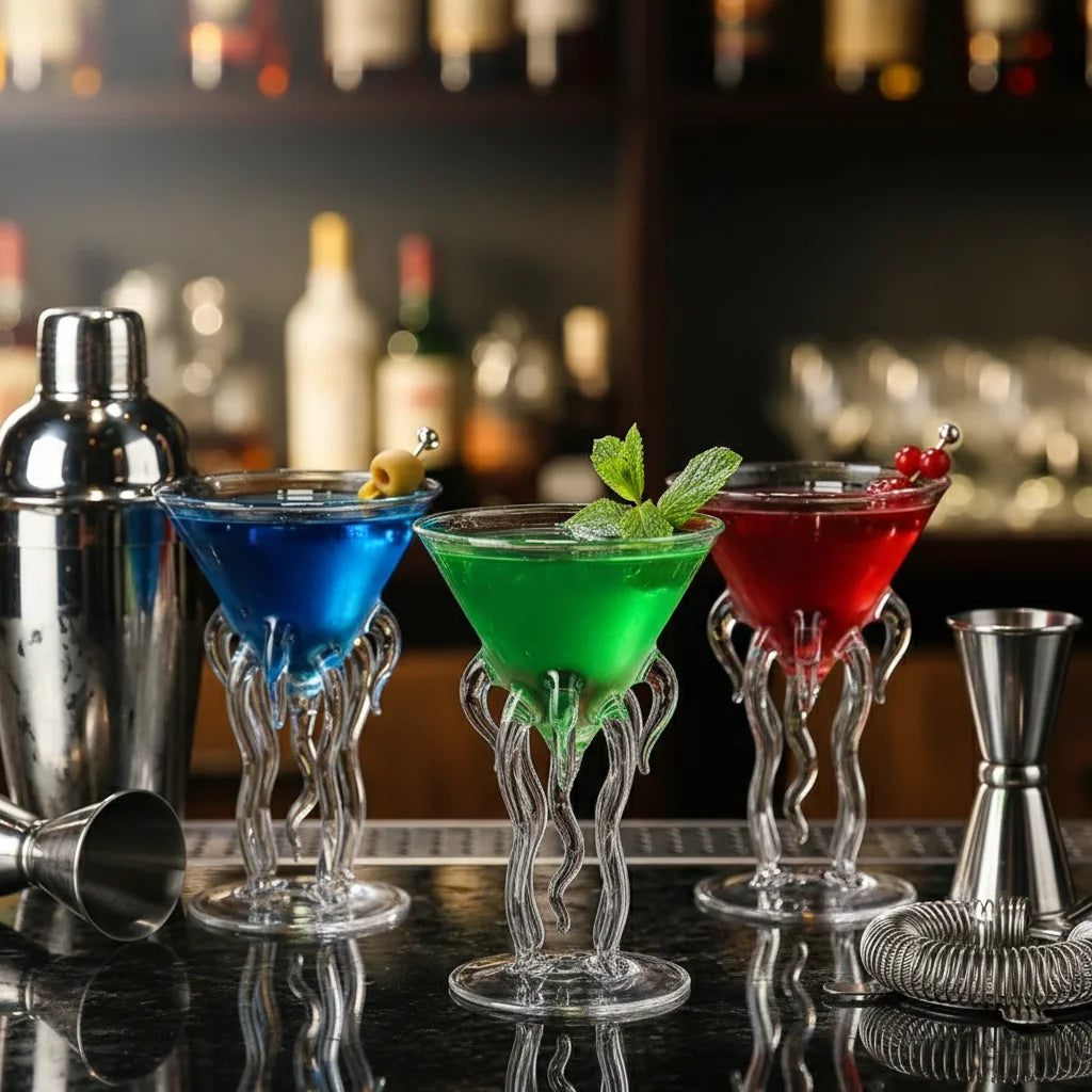 Our Under the Sea Cocktail glasses feature an exclusive octopus or jellyfish design with artistic tentacle-like stems, transforming any drink into a stunning visual experience. They're true conversation starters!